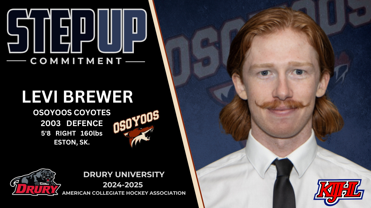 Levi Brewer of the Osoyoos Coyotes has signed to play for the Drury University Panthers in the American Collegiate Hockey Association Division 1 next fall.