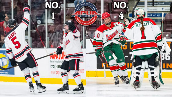 Men’s 1 Homepage 2025 M1 National Champions M1 News One game, double the points: Cyclones host Warriors Rearic Rewrites the Record Book Again How Drury swiftly became an ACHA Division I hockey power MINOT STATE UNIVERSITY REMAINS IN NO. 1 SPOT IN AMERICAN COLLEGIATE HOCKEY ASSOCIATION RANKING #13 No. 24 Warriors Capture TECH Cup with Series Split Against Lawrence Tech The Mychal Bangs Effect: How Huskies boss spurred NIU’s remarkable turnaround Beavers ranked No. 1, No. 4 in latest poll; set to host Midland No. 14 Ranked Hope Sweeps Western Michigan M1 Videos 2024 National Championship: University of Nevada-Las Vegas vs. Adrian College 2023 National Semifinal: Ohio University vs. Adrian College National Semifinal #2: University of Central Oklahoma vs. University of Nevada-Las Vegas M1 Statistical Leaders M1 Socials Twitter (@ACHAMensD1) Twitter (@ACHAHockey) ACHA Facebook Partners & Sponsors