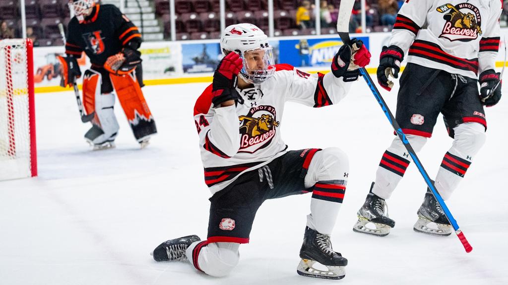 UNION LAKE, Mich. – (February 7, 2024) – Minot State University (26-5-0) holds the top spot in the 2023-2024 American Collegiate Hockey Association Men’s Division 1 Ranking No. 14. The Beavers, on top for the sixth consecutive week, swept Waldorf University (5-0, 7-0) on the road at the Albert Lea City Arena in Albert Lea, Minn. Carter Barley (three goals, two assists), Joey Moffatt (two goals, two assists), Brayden Pawluk (four assists), and Christian Kadolf (three assists) paced the Beavers offensively, which peppered Warrior’s goaltenders with 126 shots on goal. Jordan Berschiminsky managed 63 saves on the 68 shots he faced for the Warriors.